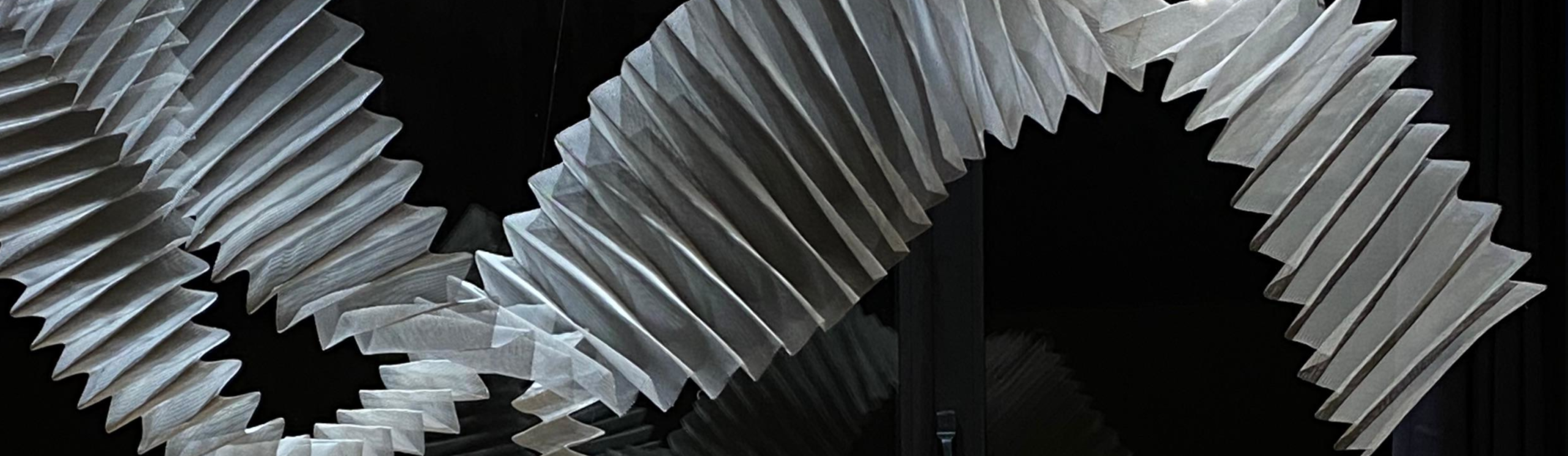 Arturo Álvarez recreates one of his most iconic and award-winning designs, creating an expanded sculpture. He transforms a rigid and cold material into a light object that folds in the air, blooming like flowers in springtime. The light that illuminates the work from the ceiling allows us to enjoy the delicate shadows cast by its forms.